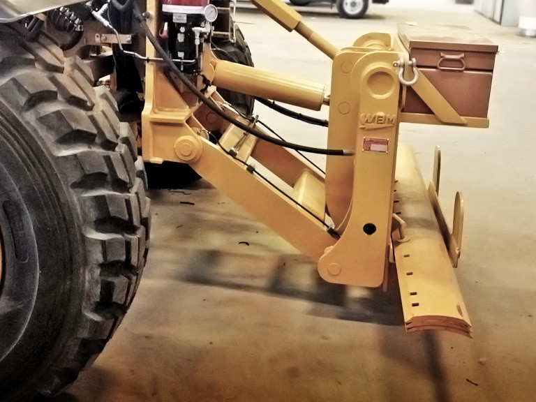 Products / Motor Grader Attachments / Motor Grader Cutting Edge Rack / MG Cutting Edge Rack with ToolboxWBM Cutting Edge Rack with Toolbox provides safe and easy storage of replacement grader moldboard bolt on edges, tools and spare parts.