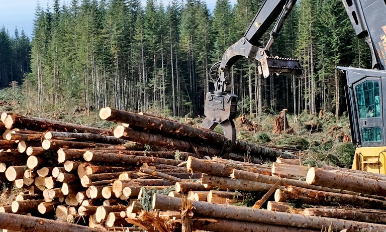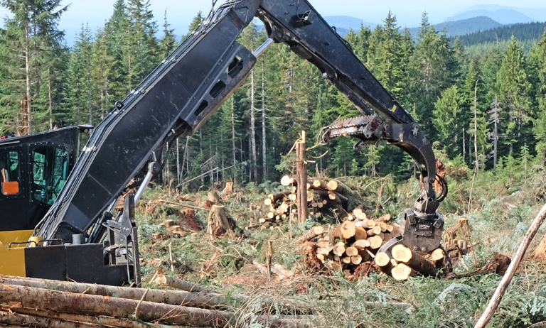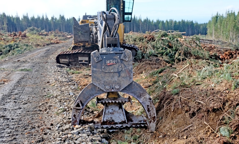 WBM’s Heel Grapple is specifically designed for loading, sorting, decking and hoe-chucking (shovel logging/ forwarding) tree length wood.