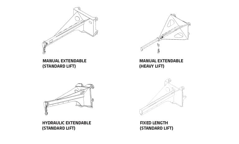 WBM Wheel Loader Jib Booms’ high reach and placement capability are well suited for unique material handling applications. Jib booms precisely handle and maneuver loads that can be attached to the chain hook on its tip. WBM Jib Booms are available in either fixed or extendable (manual or hydraulic) configurations.