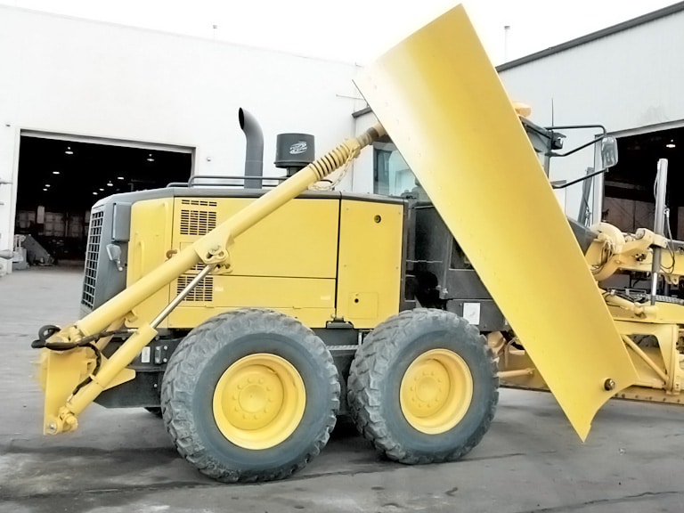 Products / Motor Grader Attachments / Motor Grader Snow Wings / MG Hydraulic Mastless Snow Wing (MSW100)WBM Mastless Snow Wings (MSW100) provide an additional safety aspect with the ability to open both doors of the cab when the wing is mounted. Mechanical and Hydraulic float at the discharge (toe) and mechanical float at the intake (heel) of the moldboard give an increased life cycle and easier operator usage when experiencing uneven or rough terrain. The MSW’s compact design significantly improves the grader’s blade angle during operation, allowing for full machine articulation.