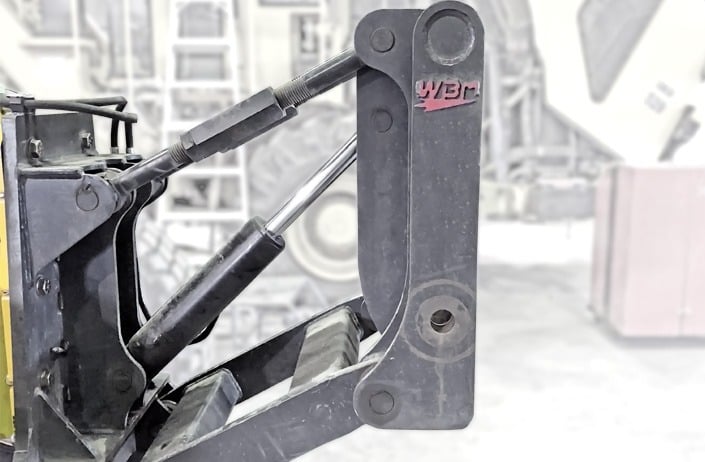 Products / Motor Grader Attachments / Motor Grader Lift Group / MG KAT Master Hitch Lift GroupThe WBM Motor Grader KAT (Kwik-a-Tach) Master Hitch Lift Group is a quick and convenient way of switching attachments on a Motor Grader. Attachments that are lugged with WBM quick coupler lugging can be either hydraulically or manually attached within minutes.