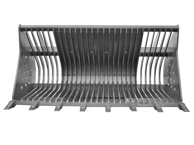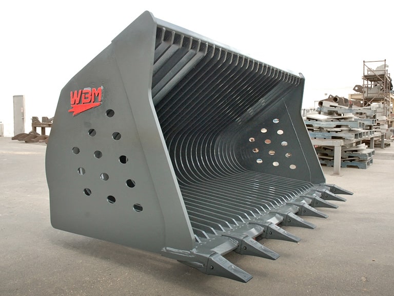 Products / Wheel Loader Attachments / Wheel Loader Buckets / WL Rock Tine BucketWBM Rock Tine Buckets separate large granular material (rocks, lumps, etc.) from smaller material. They are used in quarry applications to separate large rocks from smaller rocks or in dirt (loam) applications to filter rocks or lumps from the desired material.