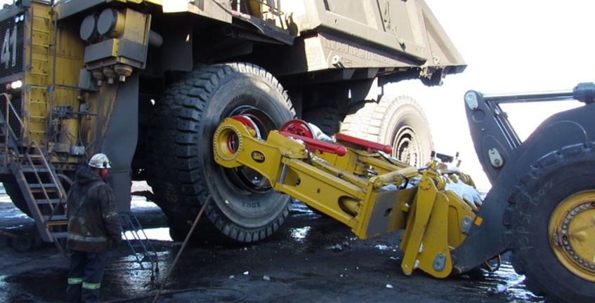 WBM – W series T35W-R63 Tire Handlers are designed to safely and efficiently handle OTR tires and rim assemblies on large mobile equipment.