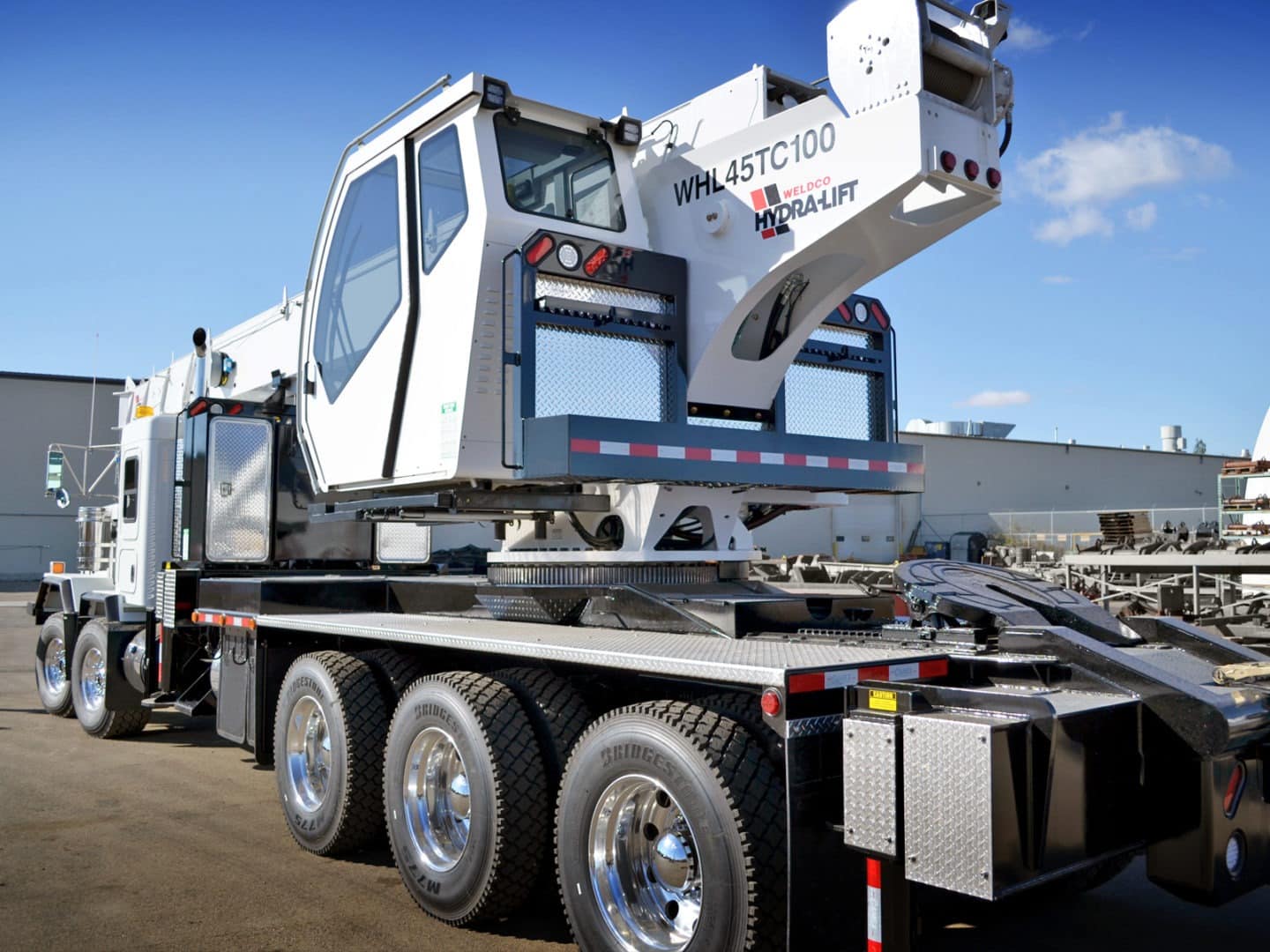 With a 45-ton lifting capacity, long reach and a sub-frame suitable for fifth wheel installation, the Hydra-Lift WHL45TC100 Swing Cab Cranes offer heavy lifting and versatility.
