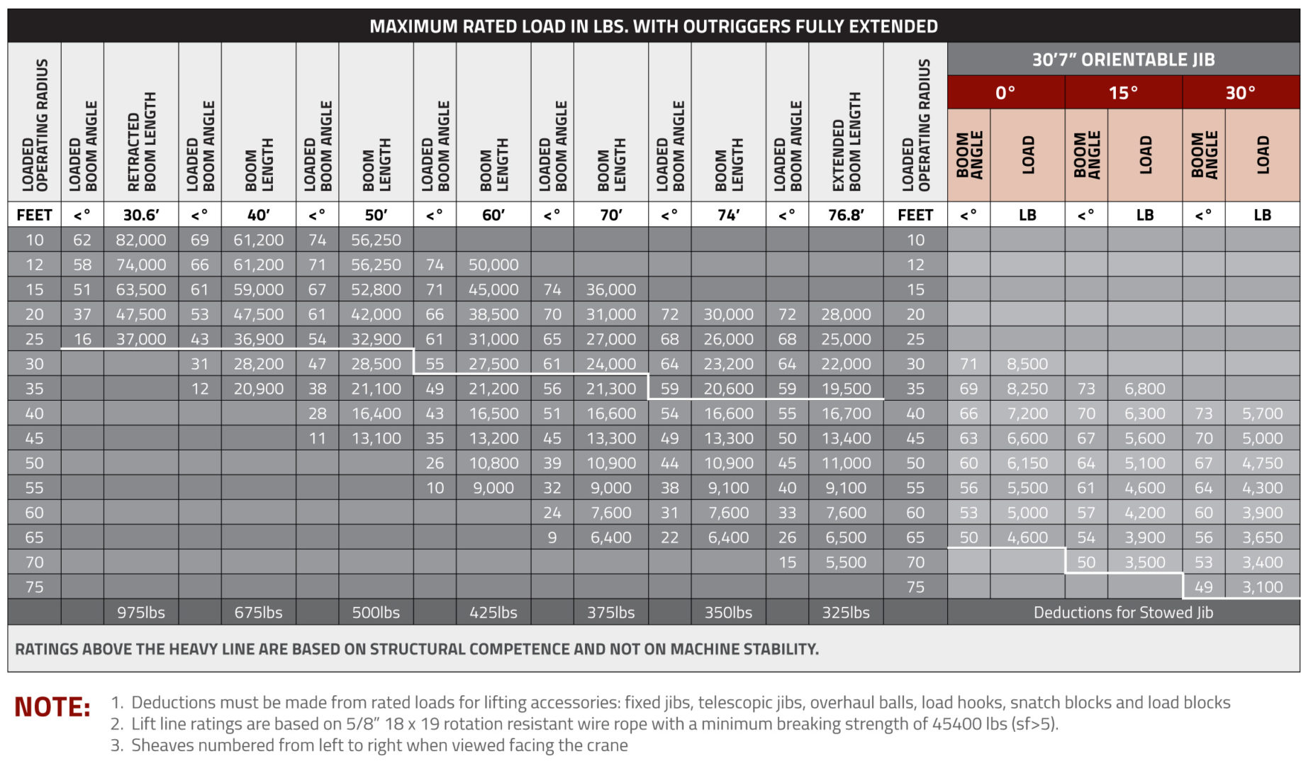 Out and down outriggers have independently operated horizontal extension cylinders and vertical jack cylinders, for true stability on uneven surfaces or in tight locations. Fully equipped cabs provide the operator with a comfortable working environment in all weather conditions. Mounted on a single steer tri-drive rear axle chassis, or tandem steer tandem rear axle chassis, WHL50TC77 Cranes deliver heavy lifting performance.