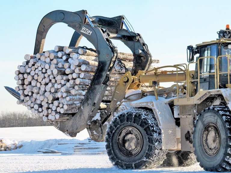 Products / Wheel Loader Attachments / Wheel Loader Grapples / WL High Capacity Cut-to-Length GrappleWBM’s High Capacity Cut-to-Length Grapples (formerly known as Pelican Shortwood Grapples) are designed for single pass loading/unloading in barge and mill yard applications.